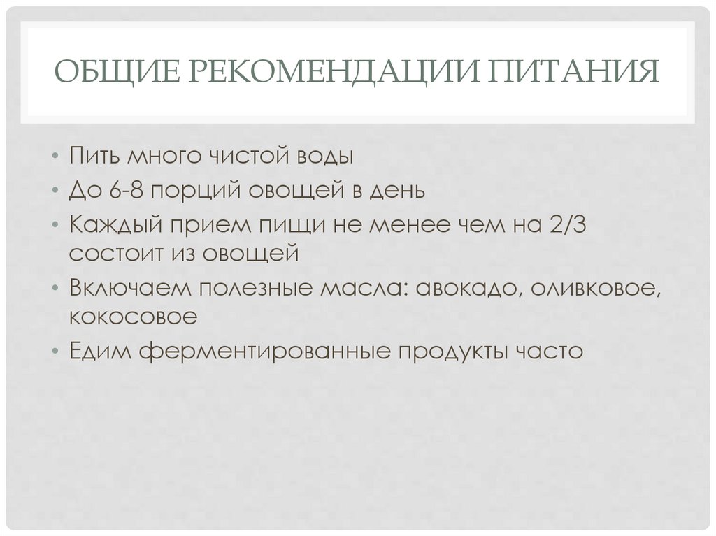 ОБЩИЕ РЕКОМЕНДАЦИИ ПИТАНИЯ• Пить много чистой воды