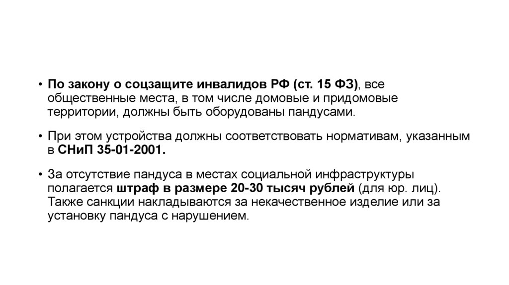 • За отсутствие пандуса в местах социальной инфраструктуры