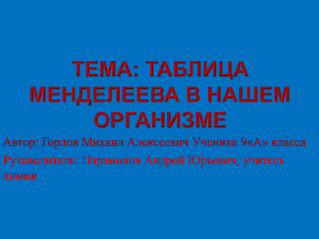 Автор: Горлов Михаил Алексеевич Ученика 9«А» класса