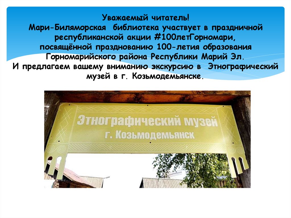 Уважаемый читатель!Мари-Биляморская библиотека участвует в праздничной