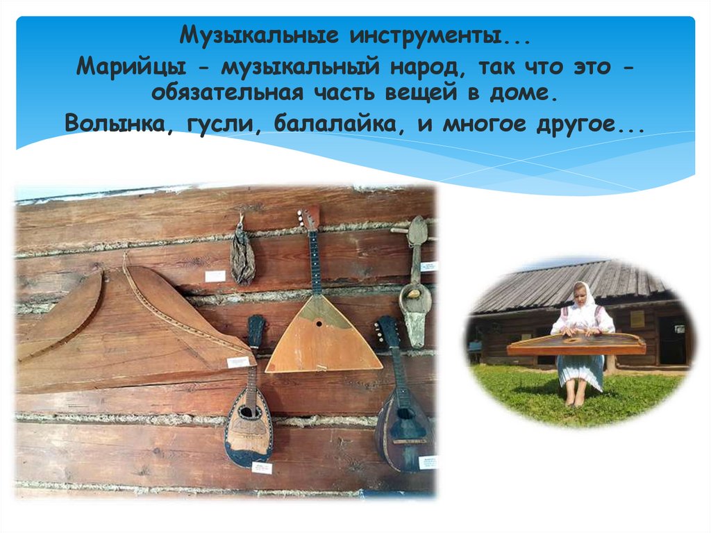 Музыкальные инструменты...Марийцы - музыкальный народ, так что это обязательная часть вещей в доме.