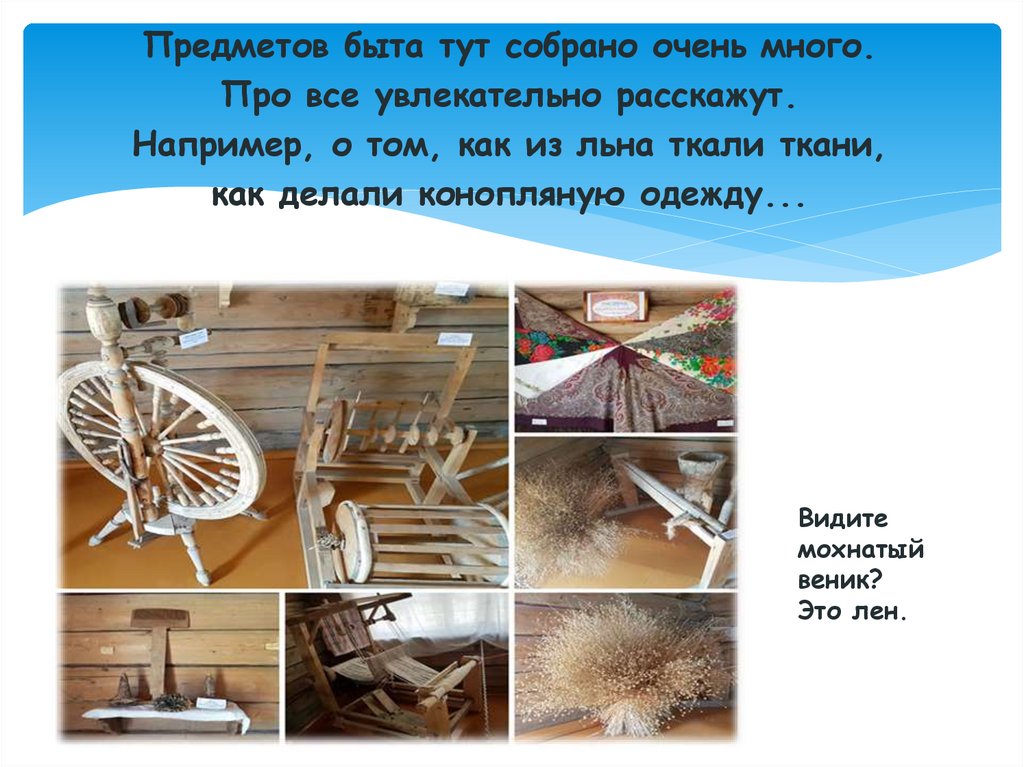 Например, о том, как из льна ткали ткани,