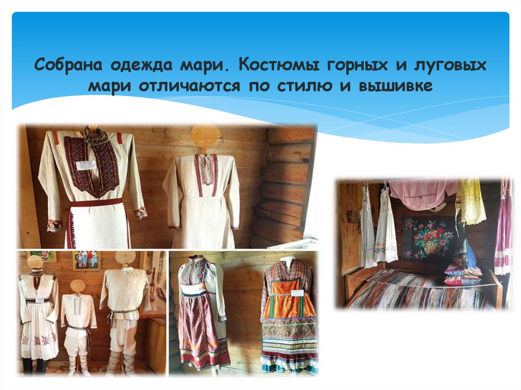 Собрана одежда мари. Костюмы горных и луговыхмари отличаются по стилю и вышивке