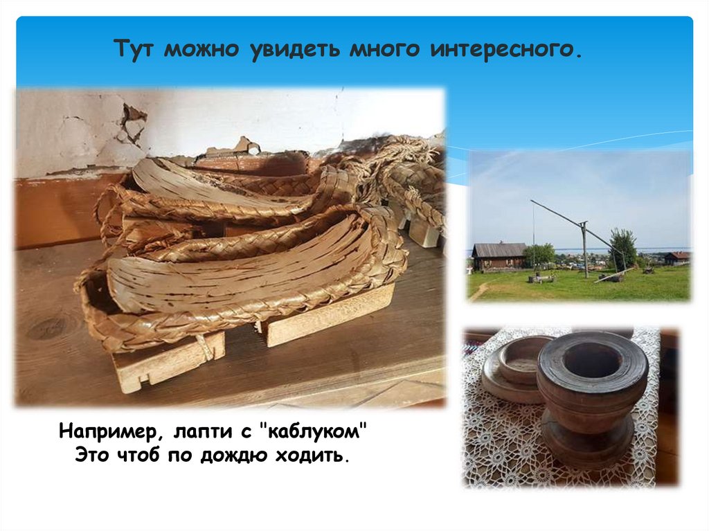 Тут можно увидеть много интересного.Например, лапти с "каблуком"