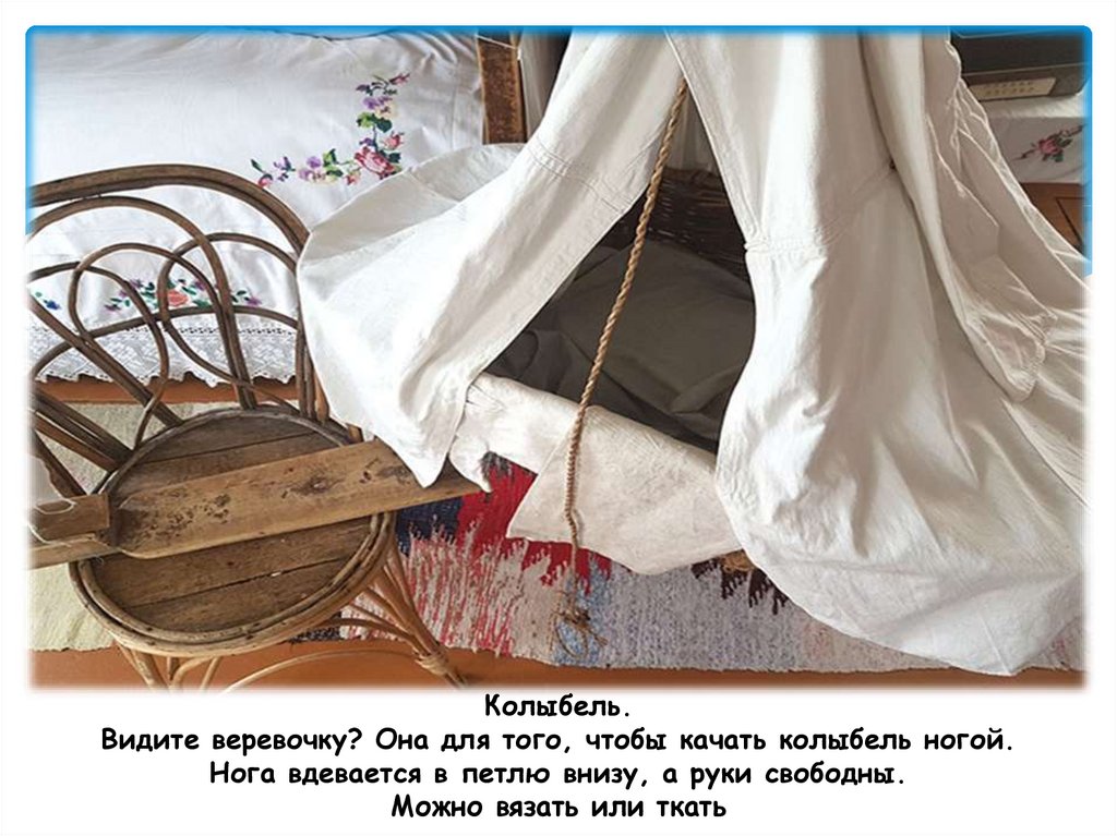 Колыбель.Видите веревочку? Она для того, чтобы качать колыбель ногой.