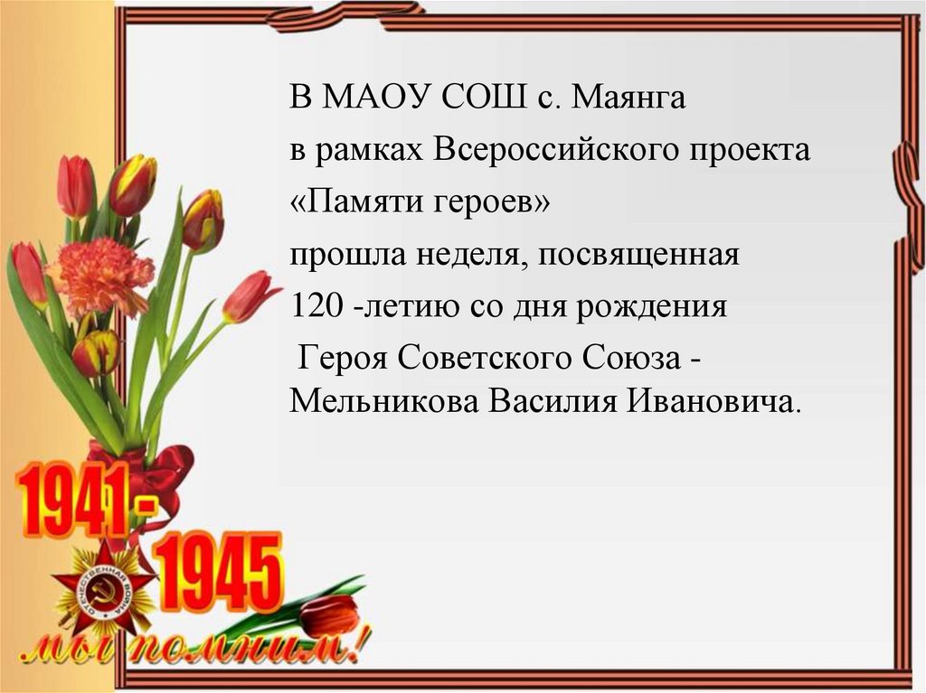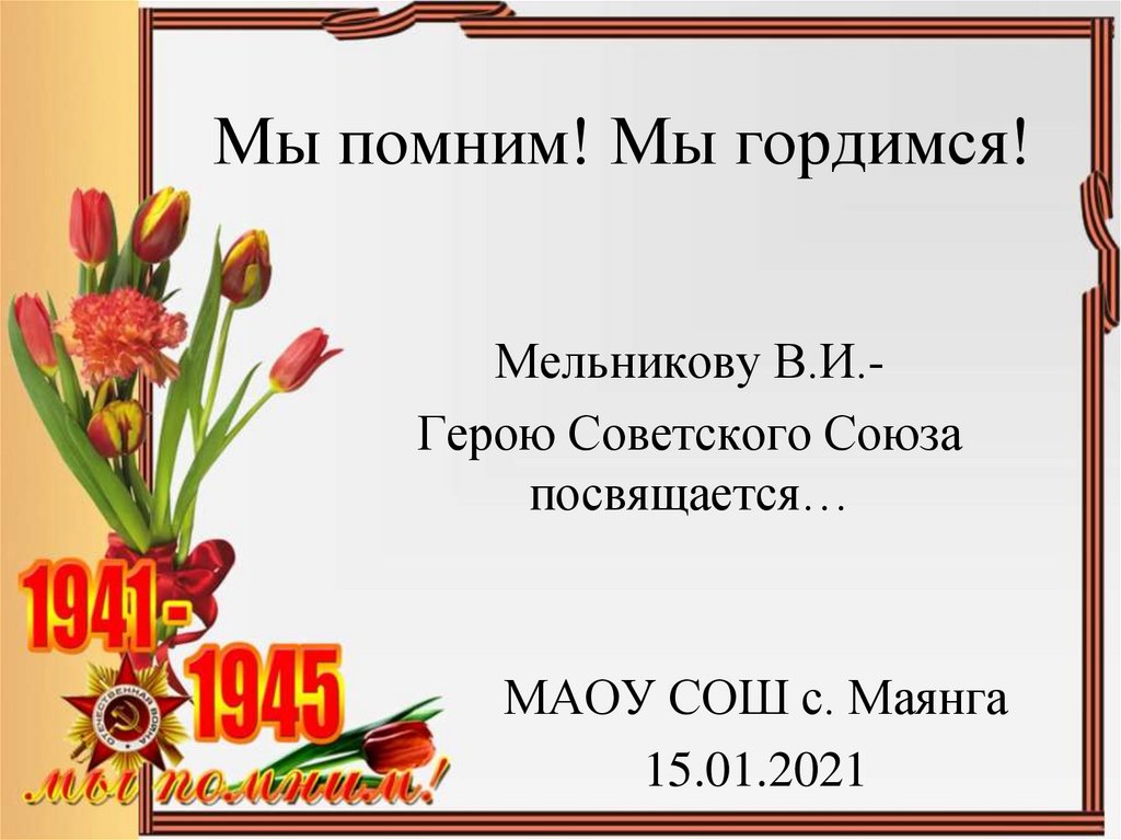 Мы помним! Мы гордимся!Мельникову В.И.Герою Советского Союза