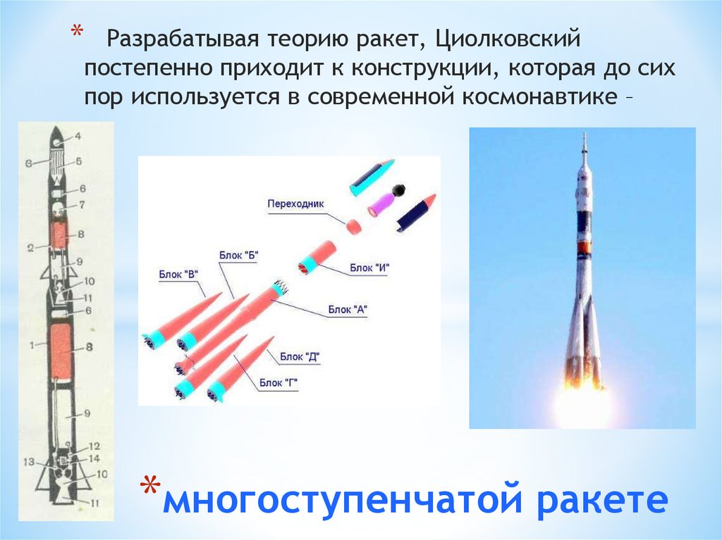 4. Говоря о вкладе Циолковского в космическую науку, мы непременно употребляем слово «первый»: