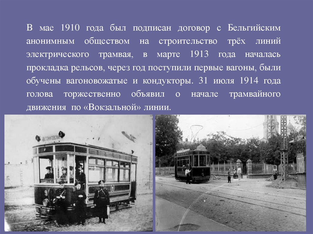 обучены вагоновожатые и кондукторы. 31 июля 1914 года