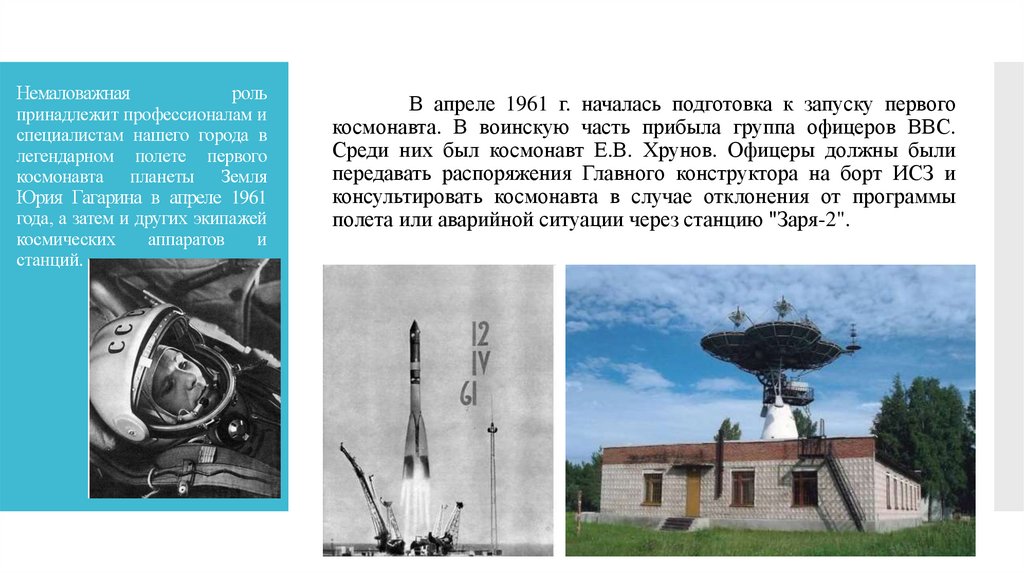 В апреле 1961 г. началась подготовка к запуску первого