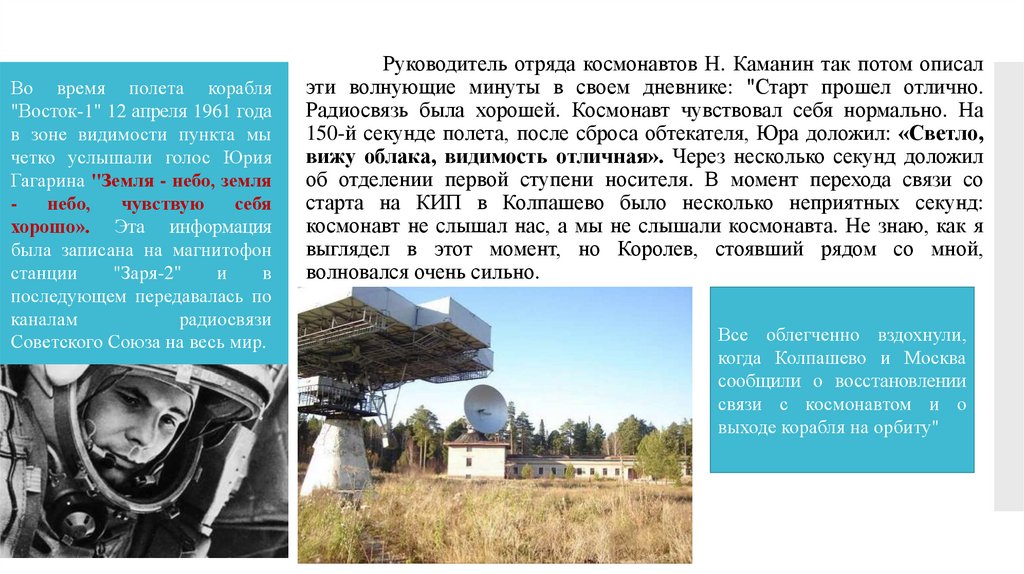 Во время полета корабля"Восток-1" 12 апреля 1961 года