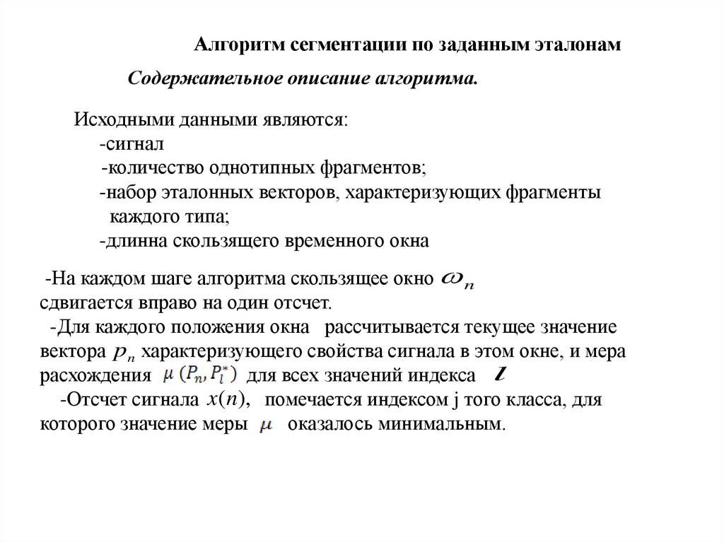 Алгоритм сегментации по заданным эталонамСодержательное описание алгоритма.
