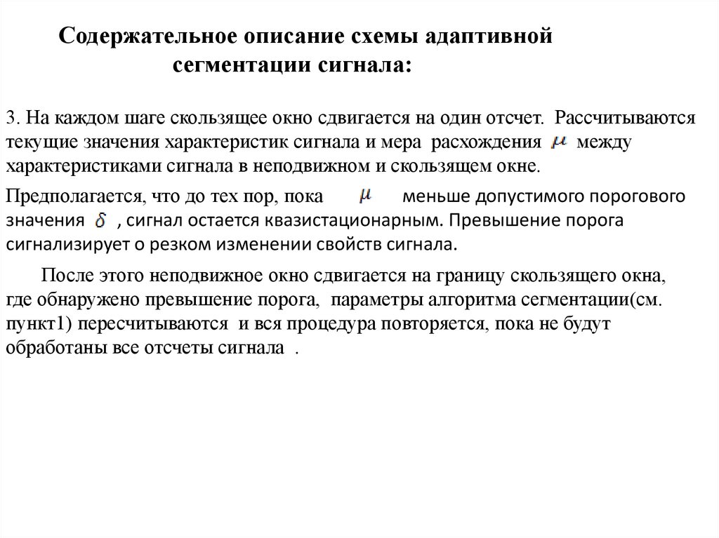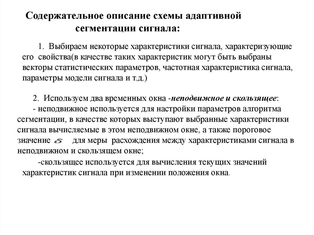 Содержательное описание схемы адаптивнойсегментации сигнала: