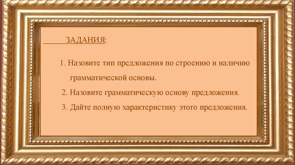 ЗАДАНИЯ:1. Назовите тип предложения по строению и наличию