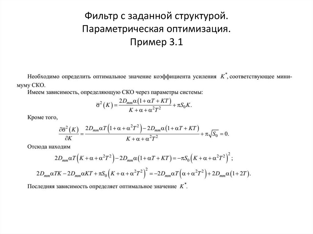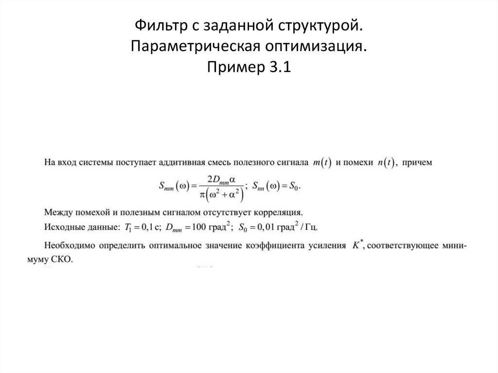 Фильтр с заданной структурой.Параметрическая оптимизация