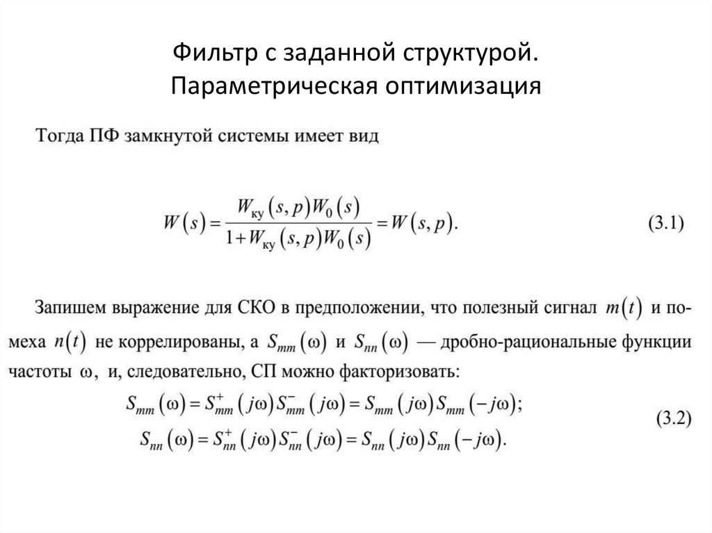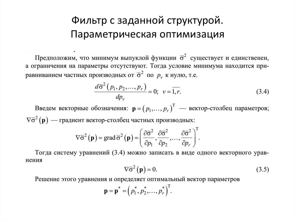 Фильтр с заданной структурой. Параметрическая оптимизация