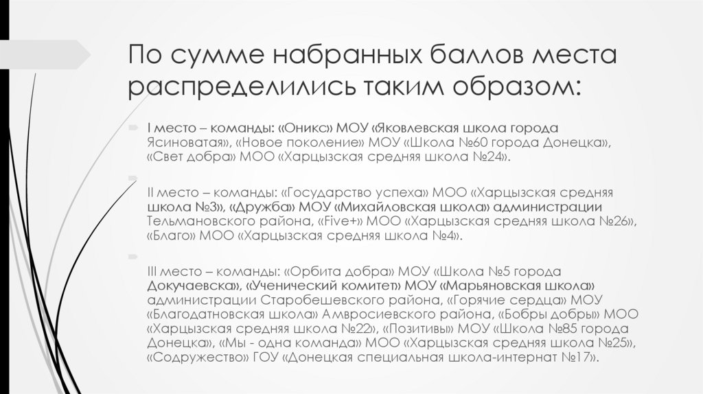 Донецка», «Мы - одна команда» МОО «Харцызская средняя школа №25»,