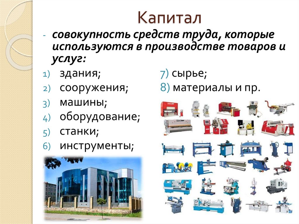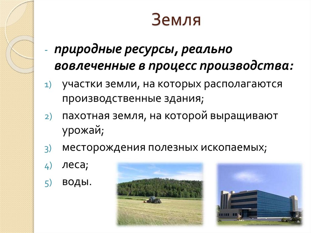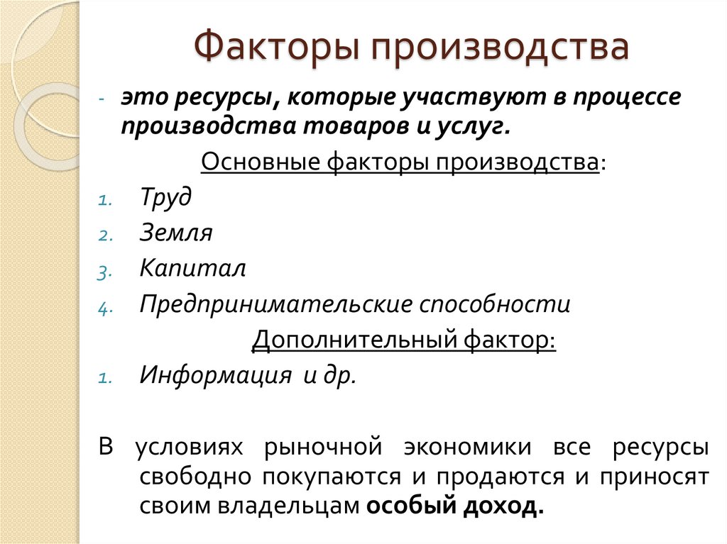 Факторы производстваэто ресурсы, которые участвуют в процессе