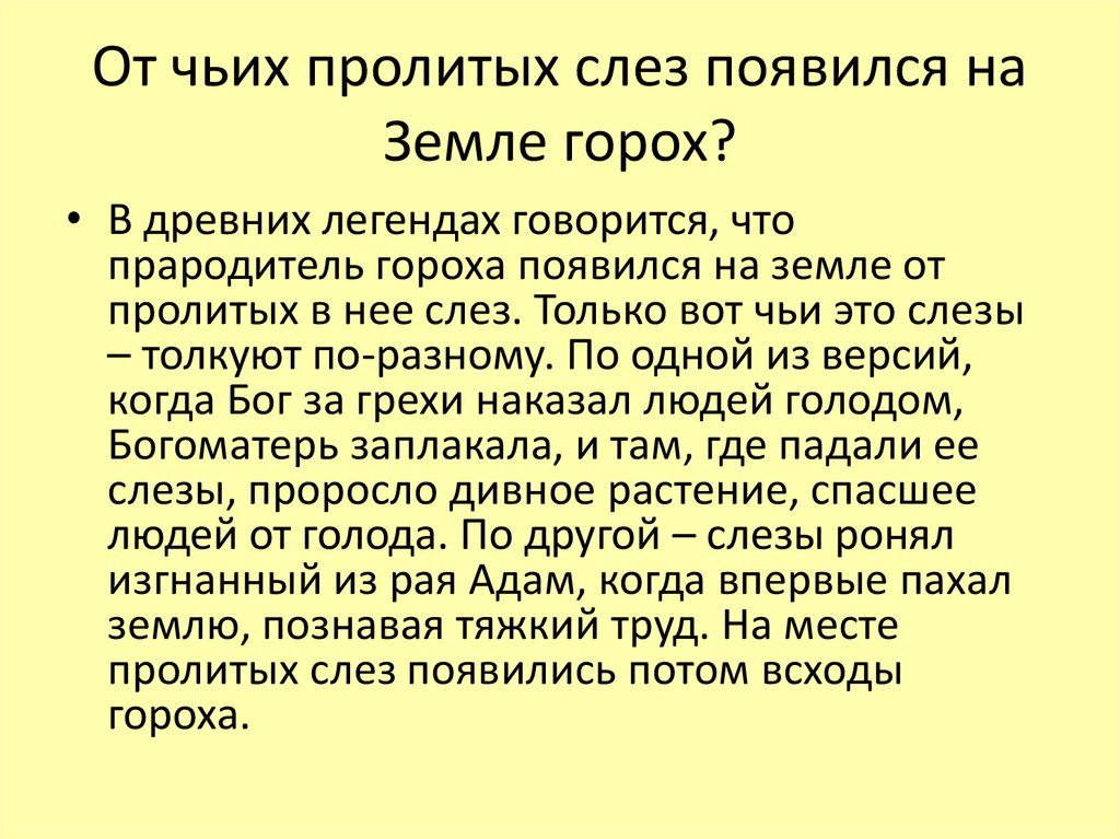 От чьих пролитых слез появился наЗемле горох?