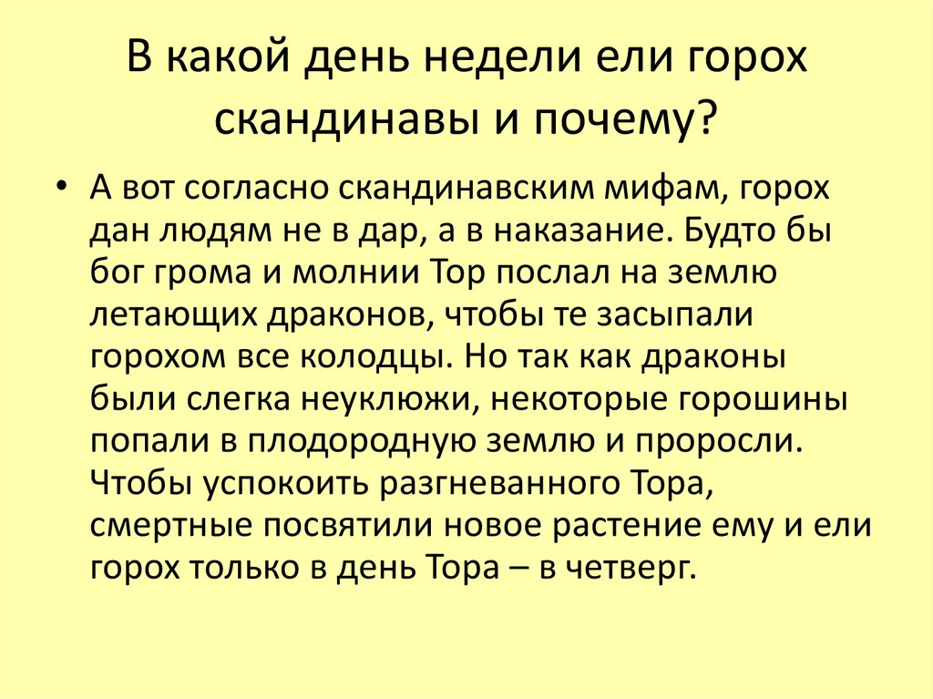 В какой день недели ели горохскандинавы и почему?
