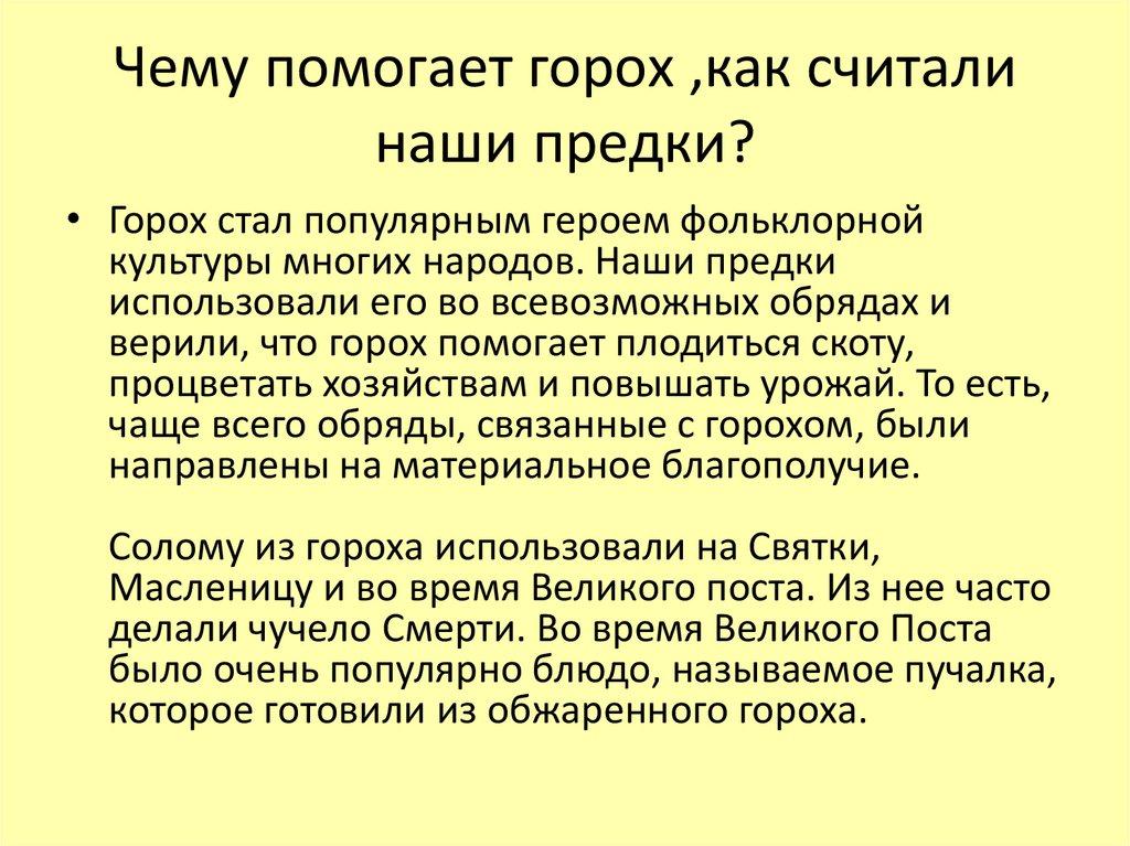 Чему помогает горох ,как считалинаши предки?