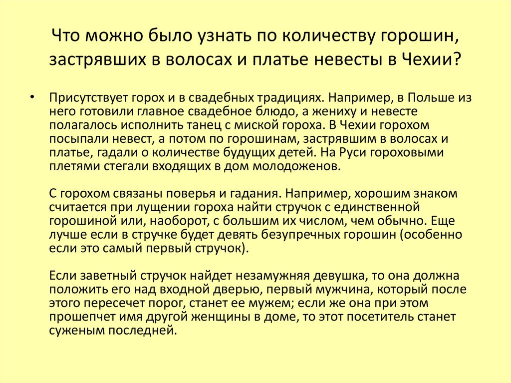 полагалось исполнить танец с миской гороха. В Чехии горохом