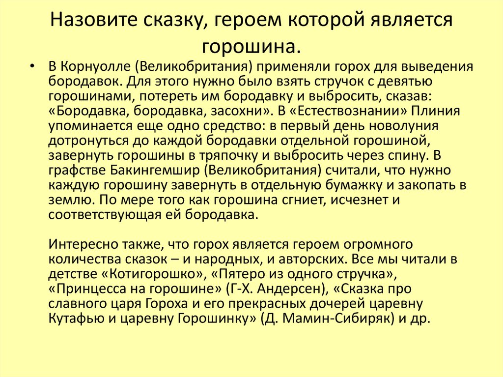 • В Корнуолле (Великобритания) применяли горох для выведения