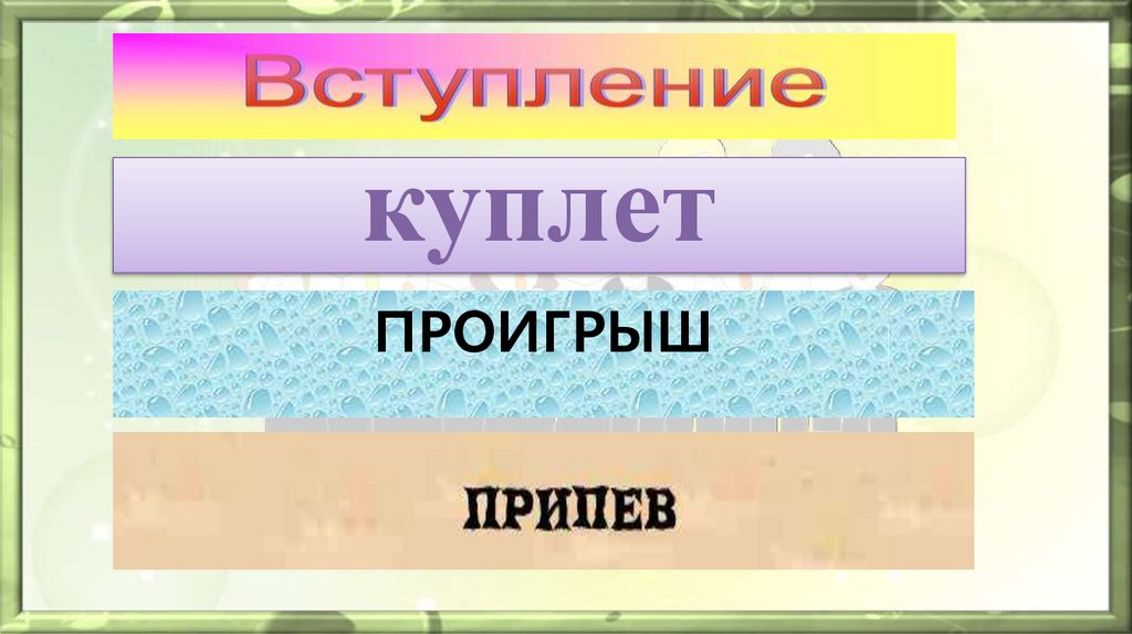 Вступление, куплет, проигрыш, припев.