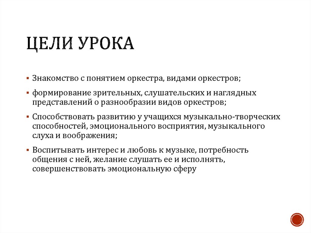 Знакомство с понятием оркестра, видами оркестров;формирование зрительных, слушательских и наглядных