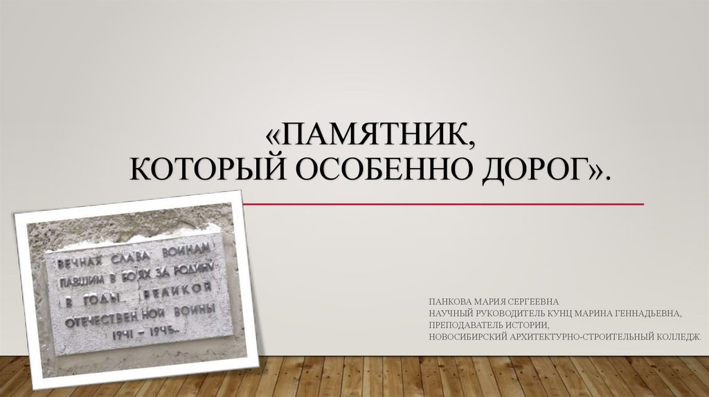 «ПАМЯТНИК,КОТОРЫЙ ОСОБЕННО ДОРОГ».
