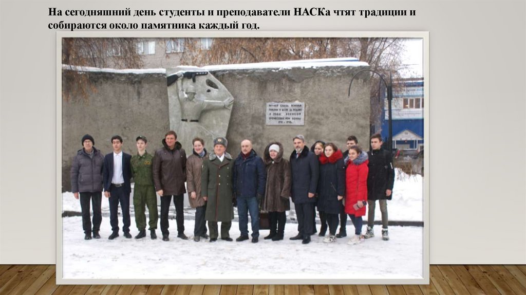 На сегодняшний день студенты и преподаватели НАСКа чтят традиции исобираются около памятника каждый год.