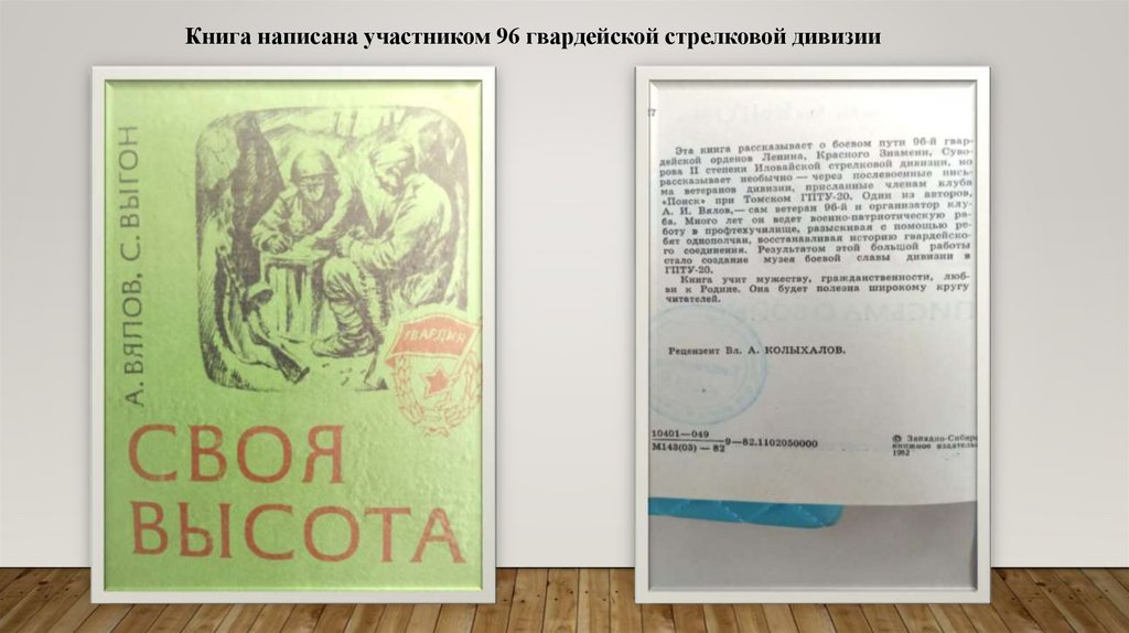 Книга написана участником 96 гвардейской стрелковой дивизии6.
