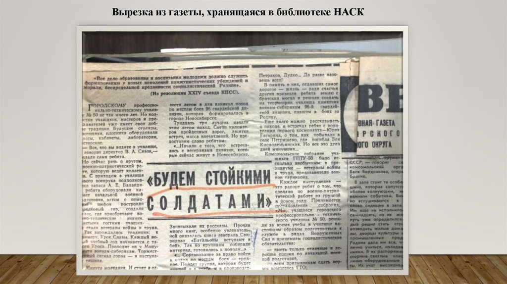 Вырезка из газеты, хранящаяся в библиотеке НАСК7.