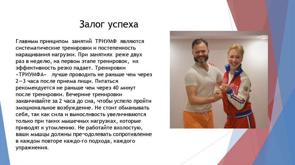 Залог успехаГлавным принципом занятий ТРИУМФ являются