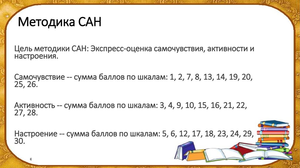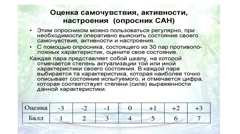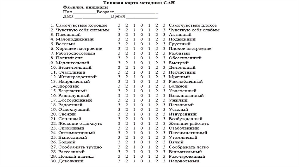 Методика САНЦель методики САН: Экспресс-оценка самочувствия, активности и