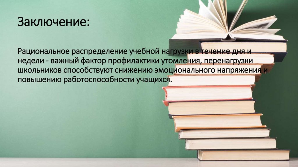 Заключение:Рациональное распределение учебной нагрузки в течение дня и
