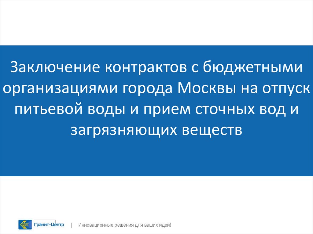 Заключение контрактов с бюджетными организациями города Москвы на отпуск питьевой воды и прием сточных вод, загрязняющих веществ