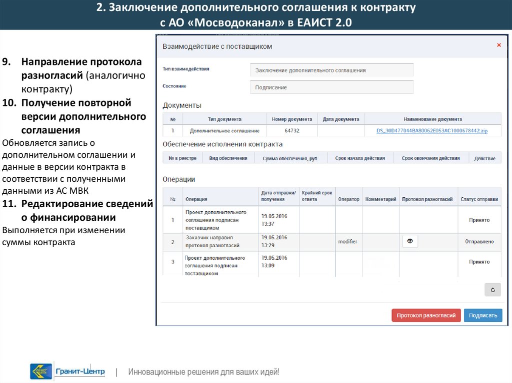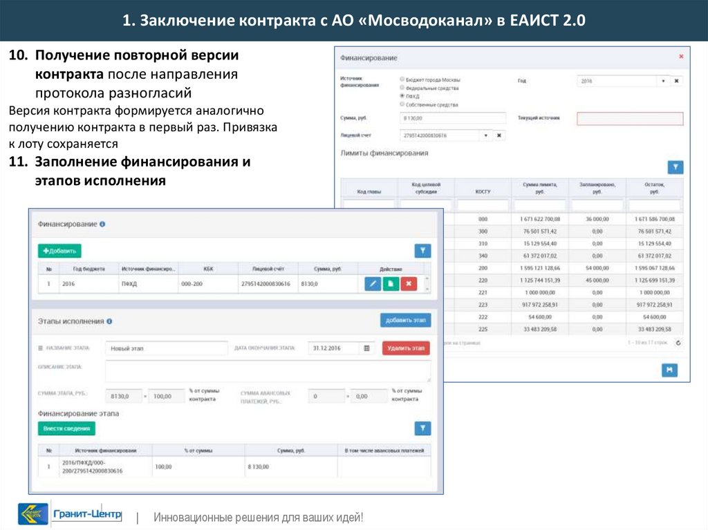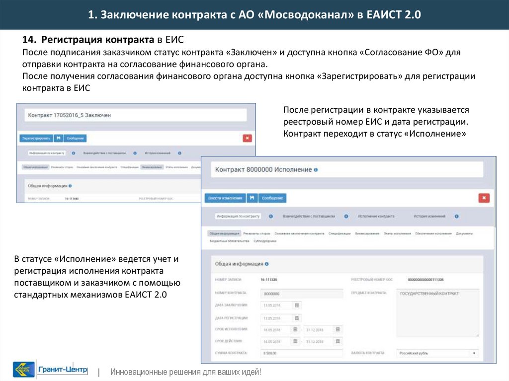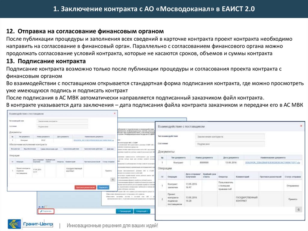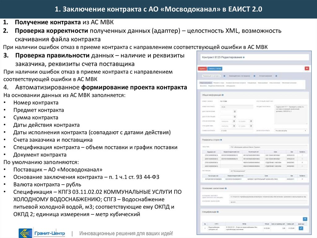 1. Заключение контракта с АО «Мосводоканал» в ЕАИСТ 2.01. Получение контракта из АС МВК