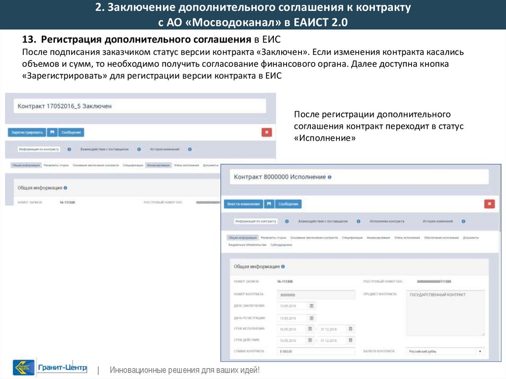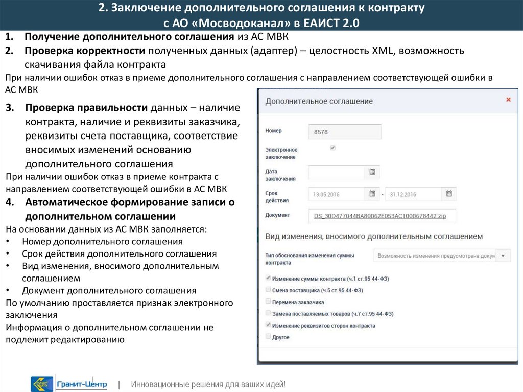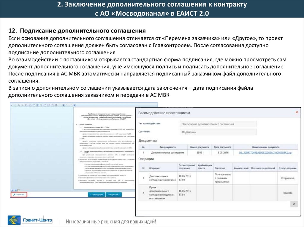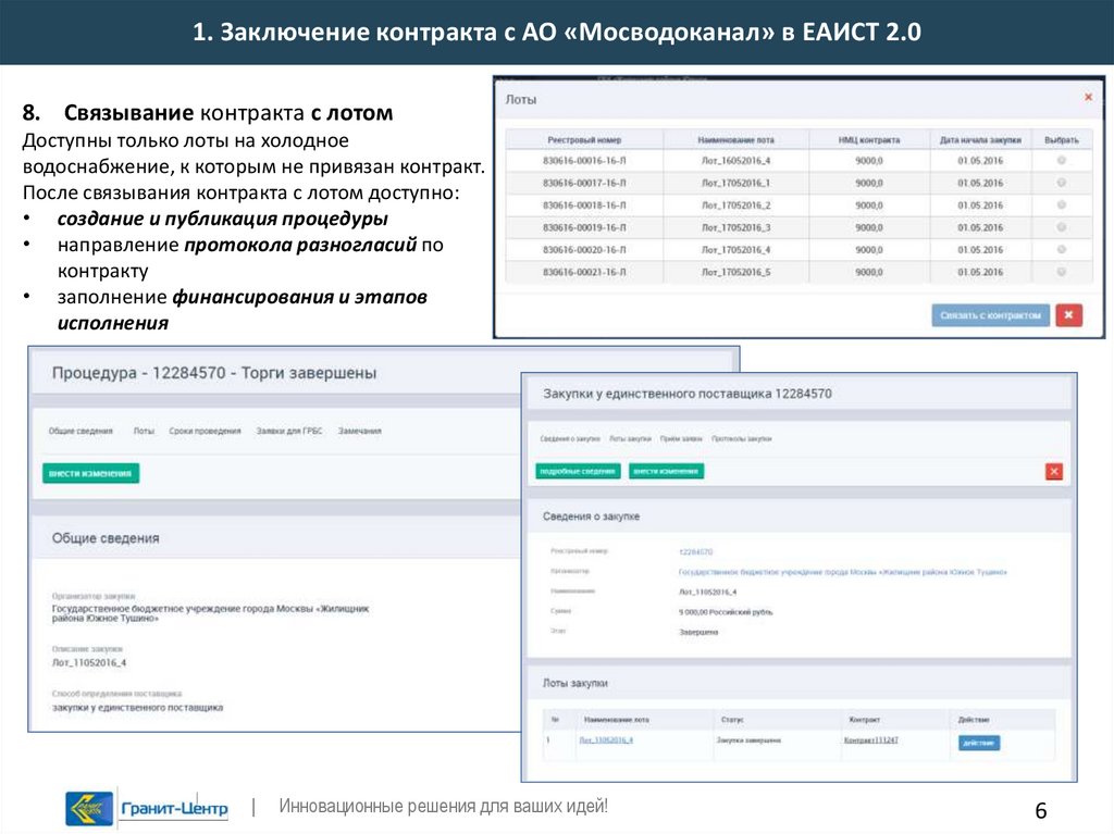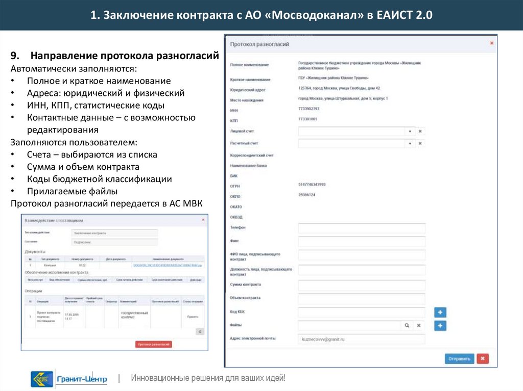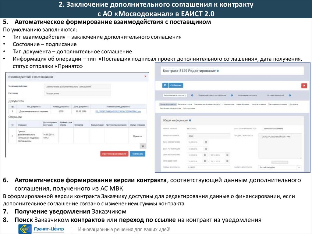 1. Заключение контракта с АО «Мосводоканал» в ЕАИСТ 2.01. Получение контракта из АС МВК