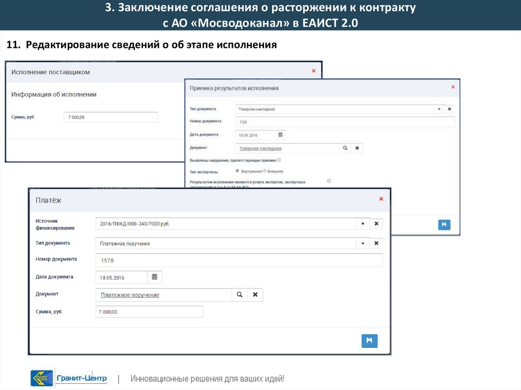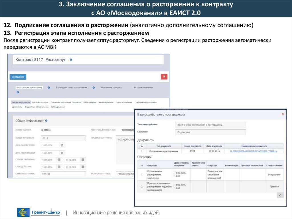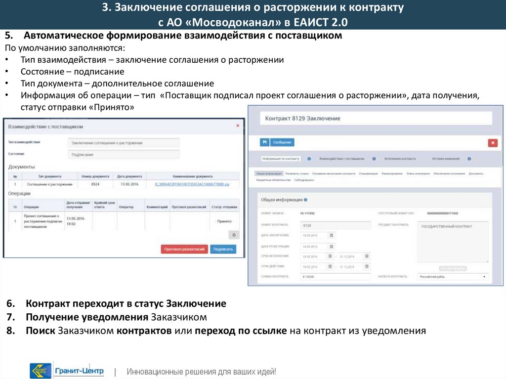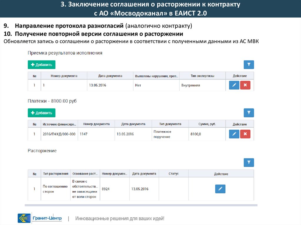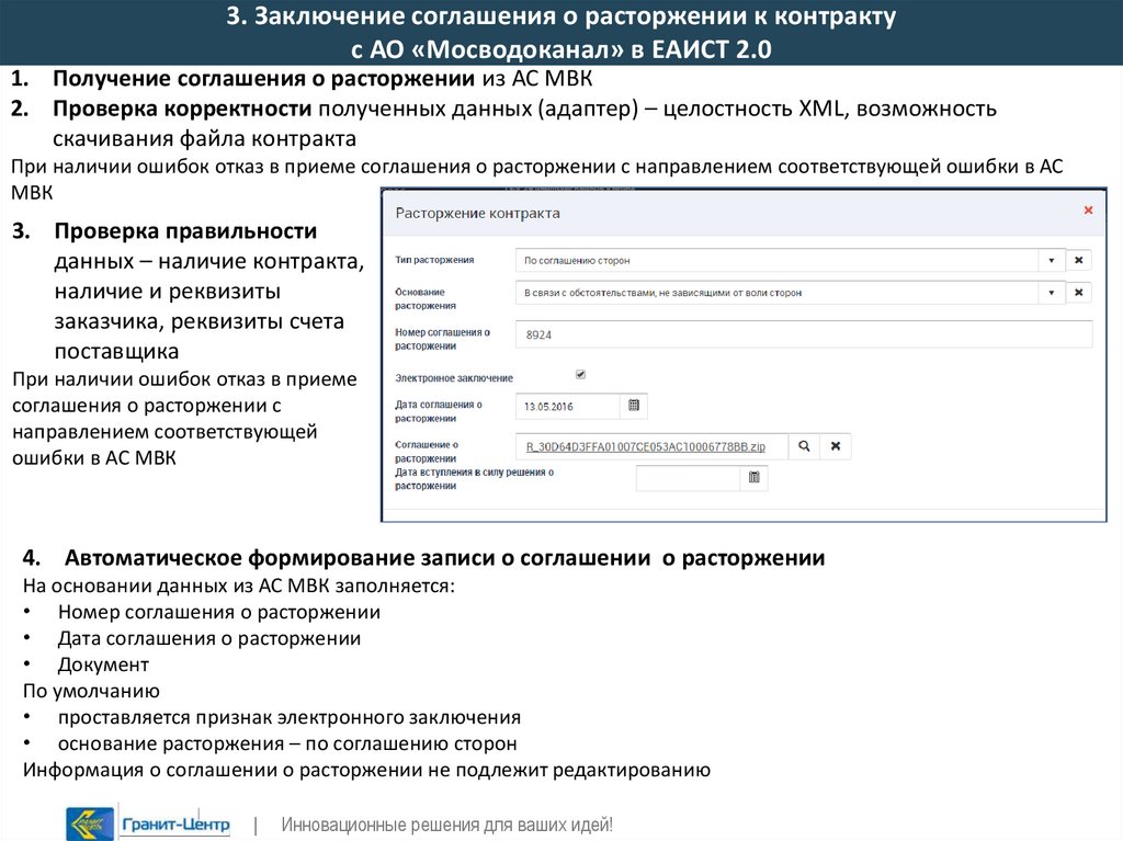3. Заключение соглашения о расторжении к контрактус АО «Мосводоканал» в ЕАИСТ 2.0
