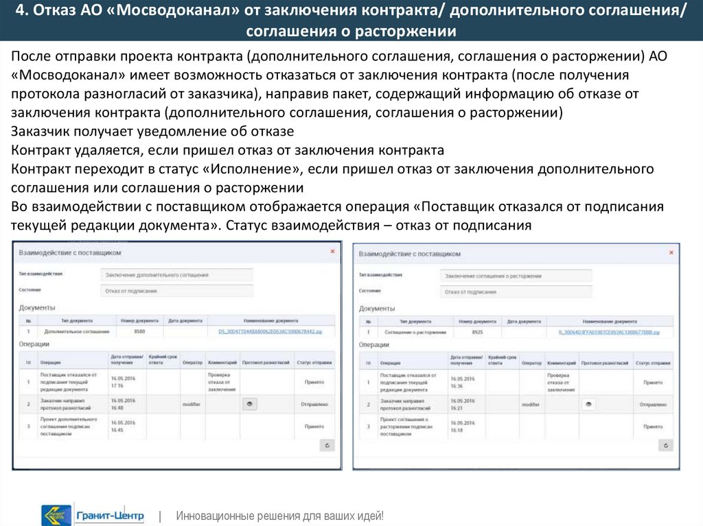 4. Отказ АО «Мосводоканал» от заключения контракта/ дополнительного соглашения/соглашения о расторжении