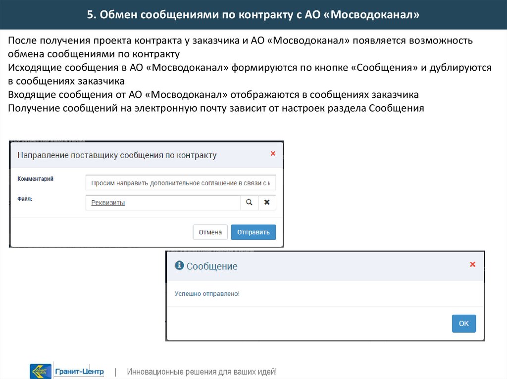 5. Обмен сообщениями по контракту с АО «Мосводоканал»После получения проекта контракта у заказчика и АО «Мосводоканал» появляется возможность