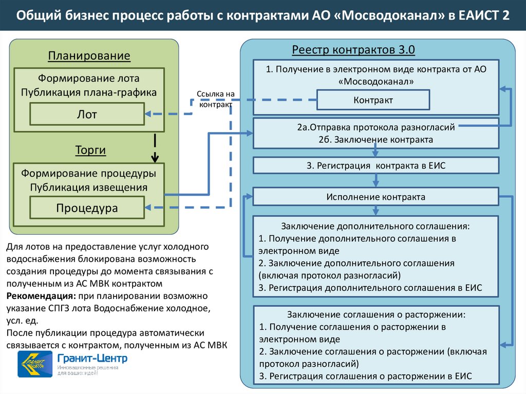 Общий бизнес процесс работы с контрактами АО «Мосводоканал» в ЕАИСТ 2Реестр контрактов 3.0