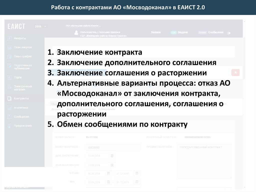 Работа с контрактами АО «Мосводоканал» в ЕАИСТ 2.01.