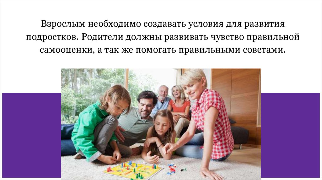 Взрослым необходимо создавать условия для развитияподростков. Родители должны развивать чувство правильной