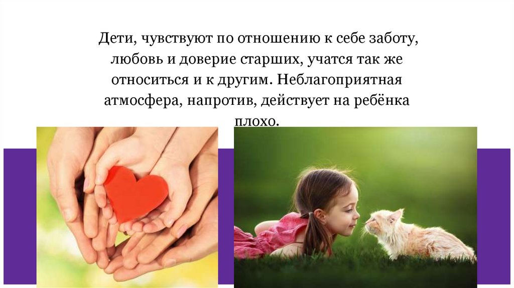 Дети, чувствуют по отношению к себе заботу,любовь и доверие старших, учатся так же