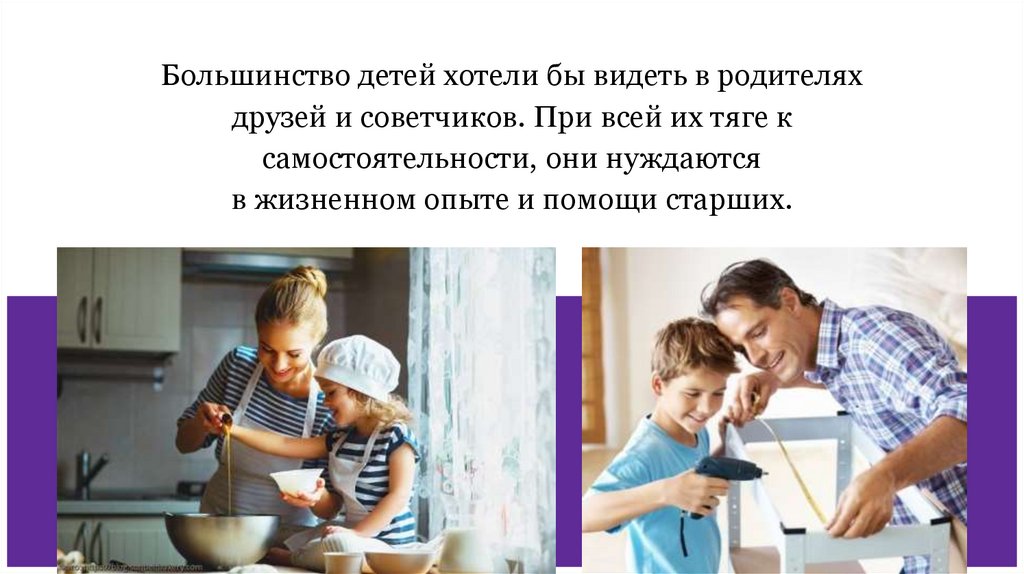 Большинство детей хотели бы видеть в родителяхдрузей и советчиков. При всей их тяге к