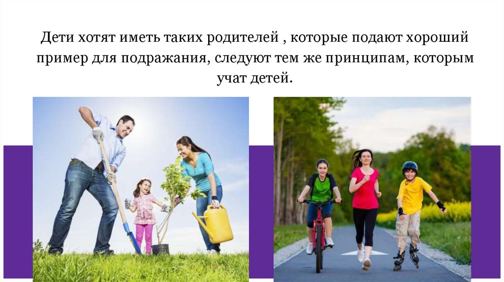 Дети хотят иметь таких родителей , которые подают хорошийпример для подражания, следуют тем же принципам, которым