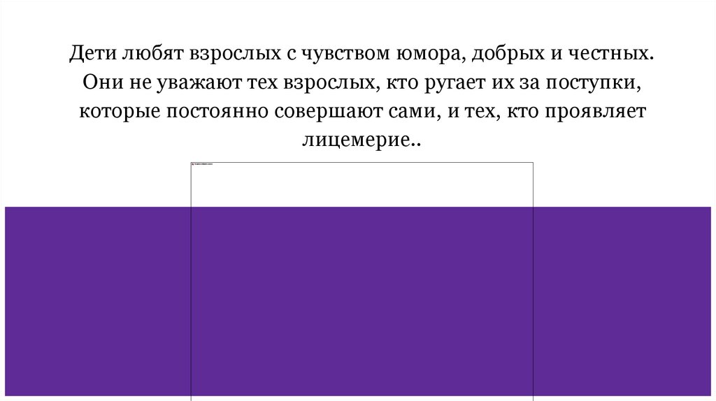 Дети любят взрослых с чувством юмора, добрых и честных.Они не уважают тех взрослых, кто ругает их за поступки,