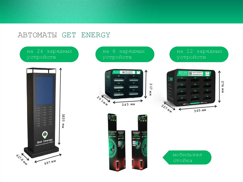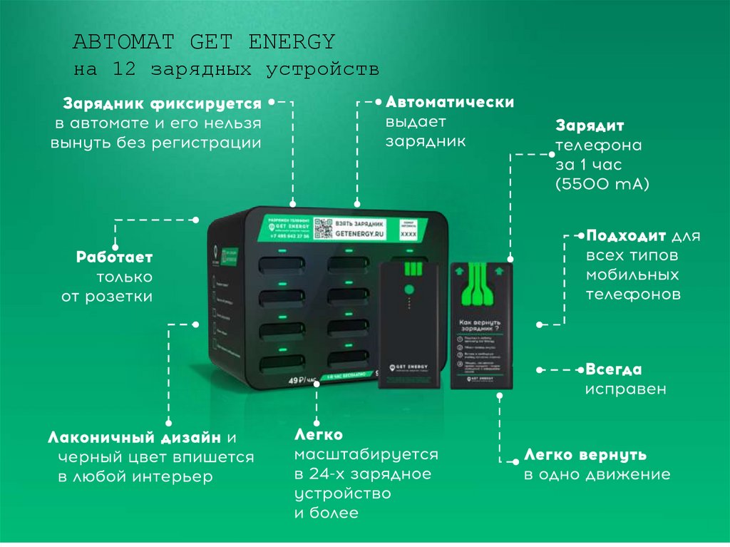АВТОМАТ GET ENERGYна 12 зарядных устройств