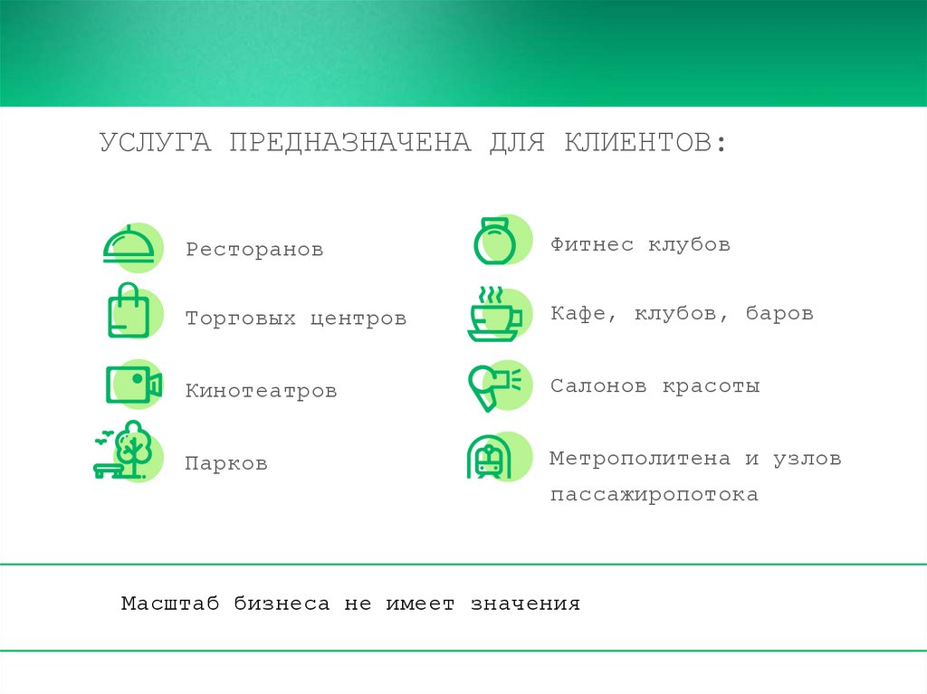 УСЛУГА ПРЕДНАЗНАЧЕНА ДЛЯ КЛИЕНТОВ:Ресторанов